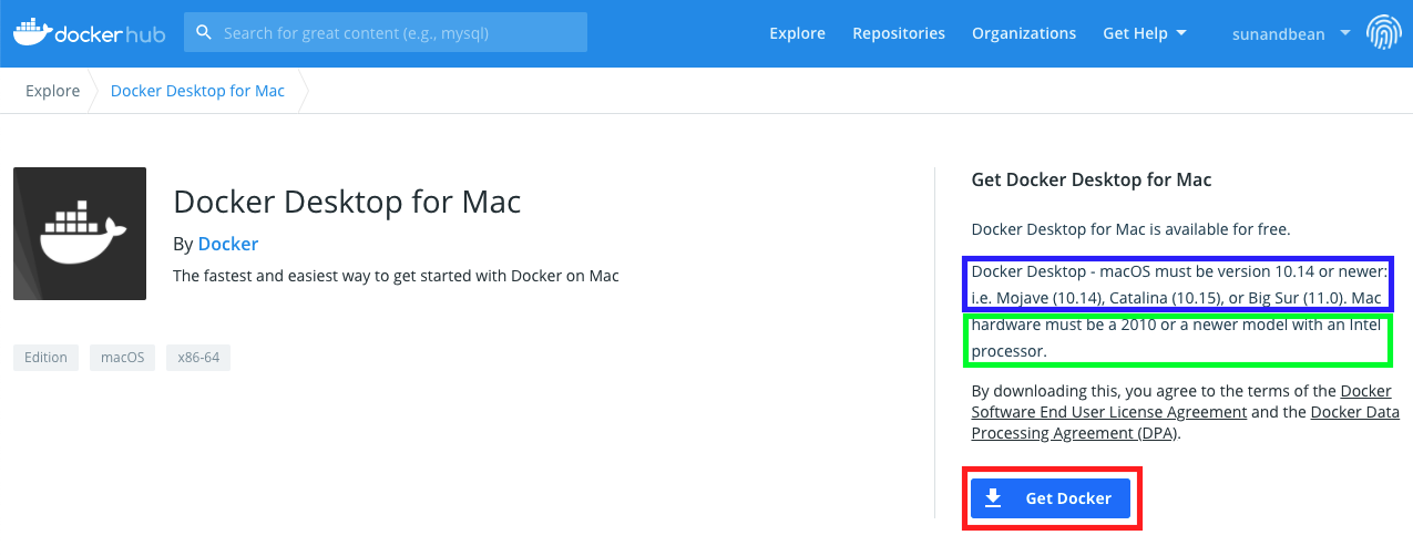 - https://hub.docker.com/editions/community/docker-ce-desktop-mac/ 링크 들어가기
