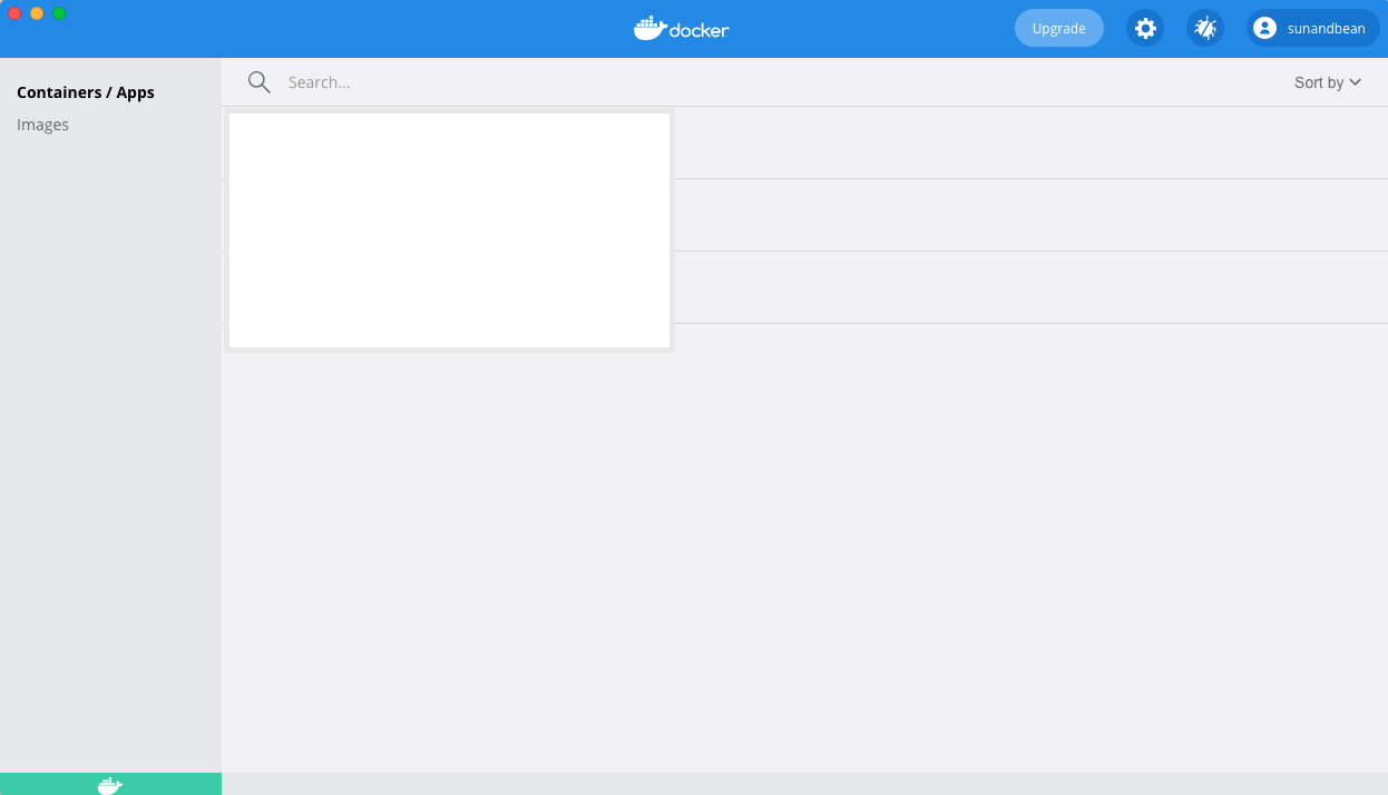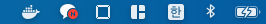 설치를 하고 spotlight나 lauchpad 에서 도커를 실행시키면 맨 위쪽 상태바에 아래 사진처럼 고래모양 표시가 뜨면서 위에 점들이 왔다갔다 한다.