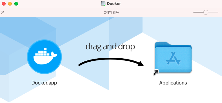 - 맥에서 프로그램 설치하는 것과 동일하게 도커 프로그램 설치하기