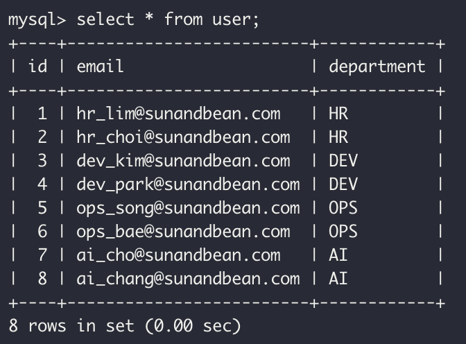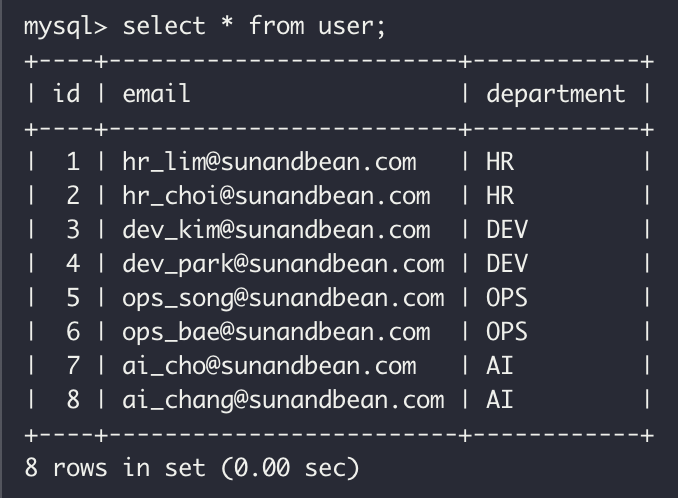 # cursor.execute(sql, ("hr_choi@sunandbean.com","HR"))