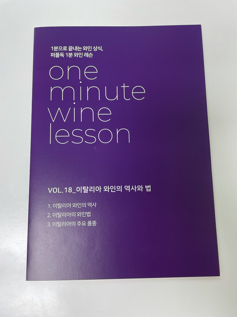 그리고 이건 내가 받은 와인과는 별개로 와인 자체에 대한 1분 레슨과 관련된 책자였다.