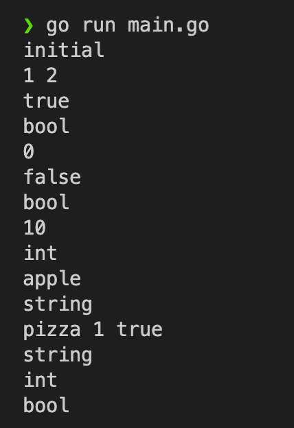 또, 변수를 선언할 때 초기값을 주지 않으면 각 type 별로 zero-value 라는 기본 값을 이용해 선언하게 된다.