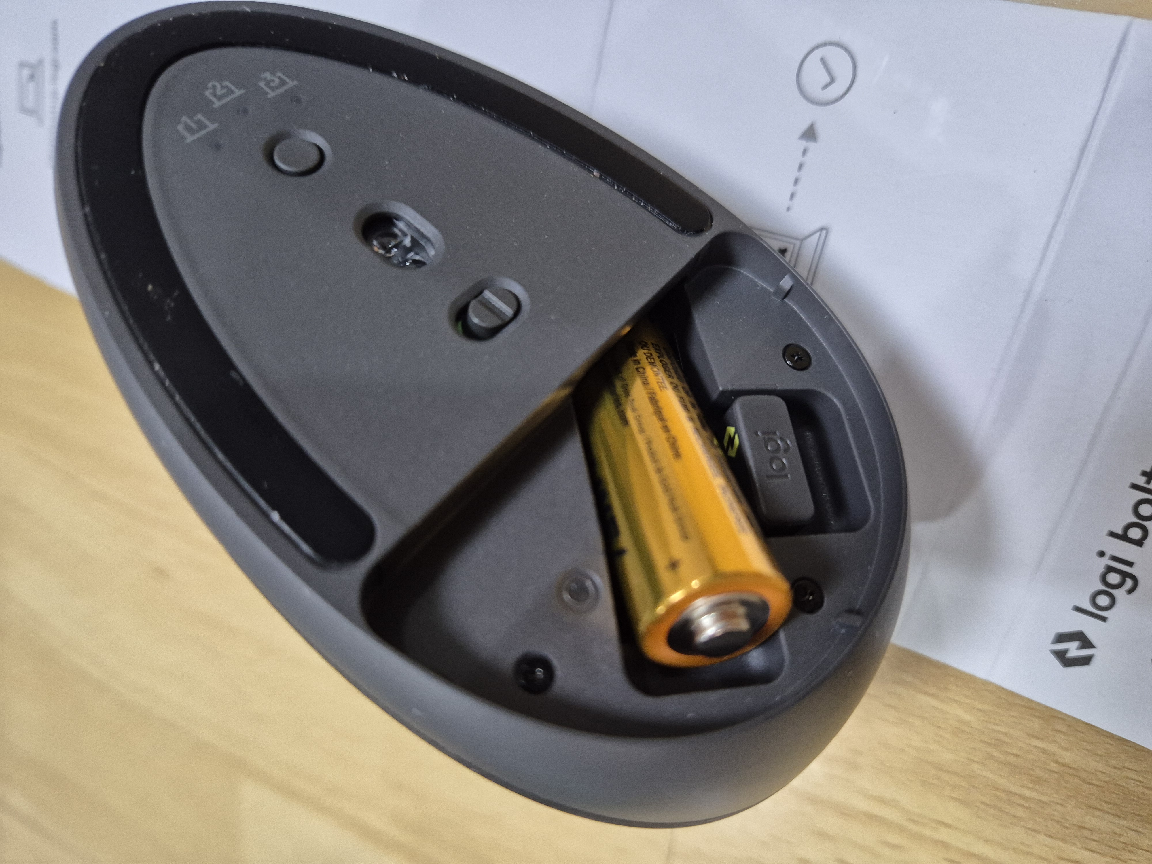 열어보면 건전지를 넣는 곳이 있고, 옆에 동글 보관함이 있다.